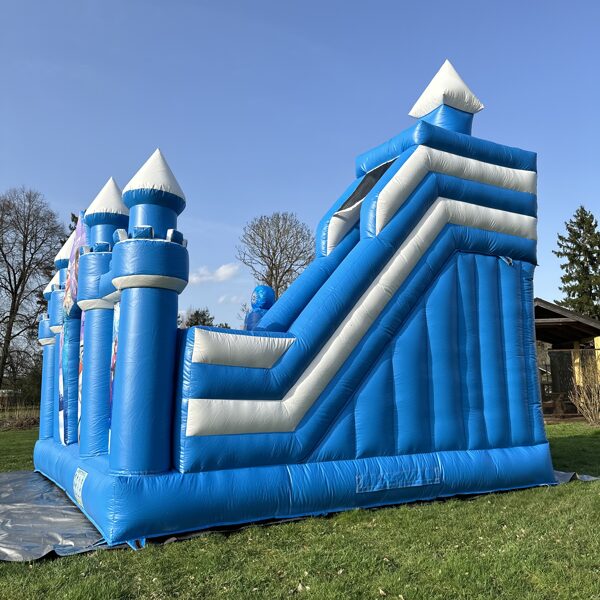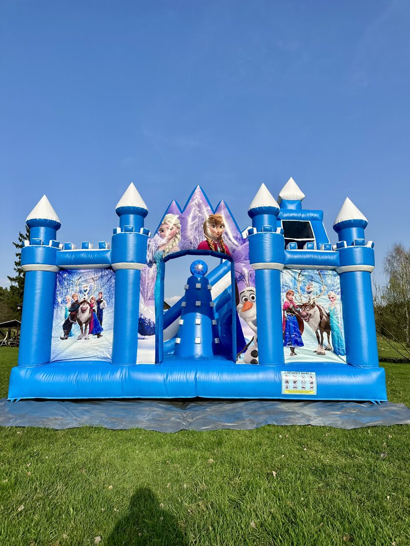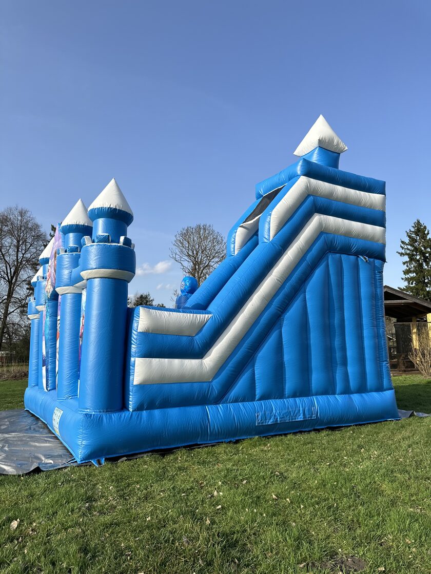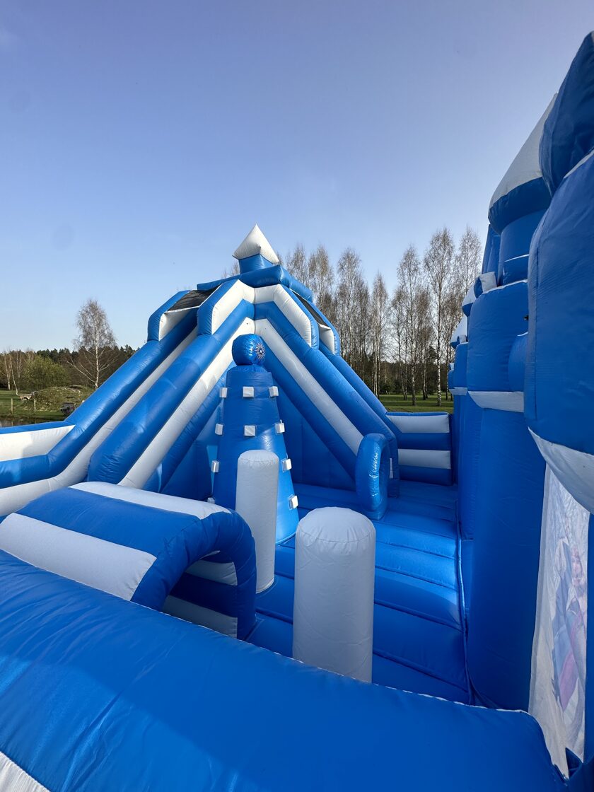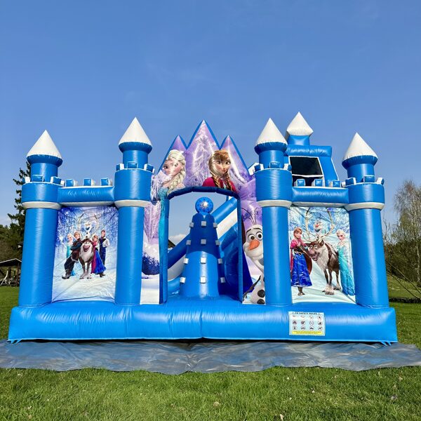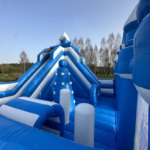 Šī ir iespaidīga piepūšamā atrakcija ar "Frozen" ("Ledus sirds") tematiku, kas veidota kā pasaku pils ar torņiem un slidkalniņu. Atrakciju rotā populārie varoņi Elza, Anna, Olafs un citi, radot maģisku ziemas pasakas noskaņu. Tā ir koši zilā krāsā un piesaista uzmanību ar ledus kalnu dizainu. Šī atrakcija ir lieliski piemērota bērnu ballītēm un pasākumiem brīvā dabā, sniedzot neaizmirstamu un drošu izklaidi mazajiem "Frozen" faniem.